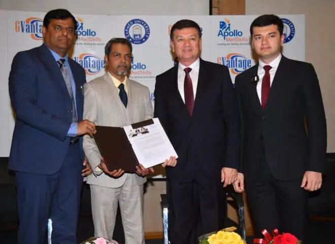 The skill development arm of Apollo Hospitals, Apollo MedSkills Ltd., has announced a major partnership with GVantage, a company that offers certification and training from international IT businesses, and Turon Zarmed University, a private medical school in Uzbekistan. With the help of qualified Indian professors, this collaboration aims to raise the standard of medical education in Uzbekistan.